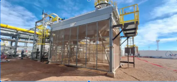 Su función es forzar el movimiento de grandes volúmenes de aire a través de los haces de tubos para enfriar directamente fluidos de proceso (como gas o petróleo) o enfriar motores industriales mediante un circuito cerrado, sin utilizar agua de forma directa. Son fundamentales para la eficiencia de la refrigeración en seco. Por otro lado, las persianas permiten regular el caudal de aire y sobre todo evitar el sobreenfriamiento en época invernal, lo cual es especialmente necesario y crítico para Gases pesados como el de Vaca Muerta, buscando evitar la condensación que es sumamente peligrosa para los sistemas de compresión.